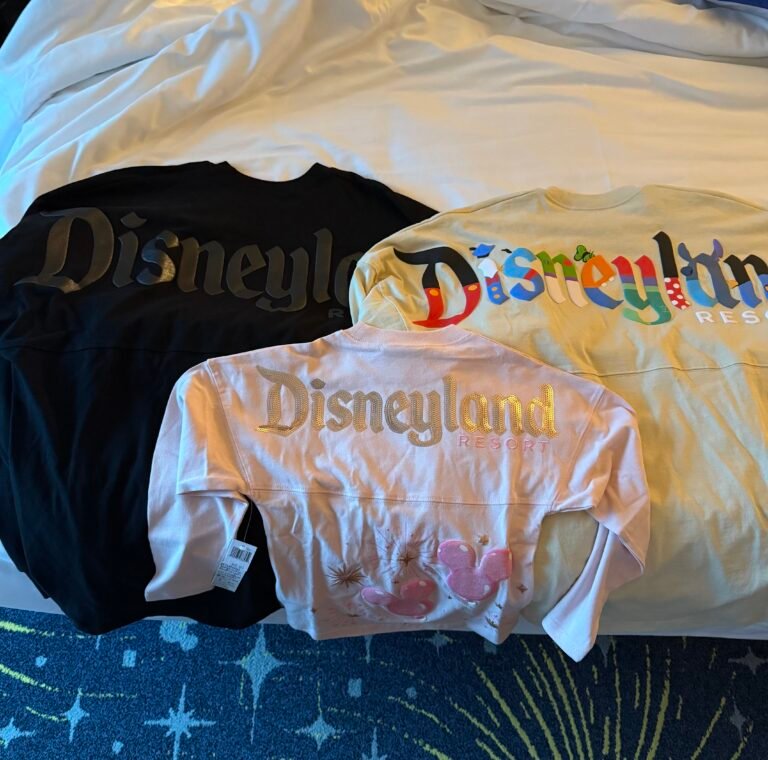 We met back up with my brother and sister-in-law on Main Street where we caught part of the Paint the Night parade, as well as grabbing ice cream at Gibson Grill! We left Disneyland a bit before park closing (at 11:00pm) and headed towards Downtown Disney. My husband and I wanted to look in the World of Disney store to make some purchases for ourselves. We ended up buying some Disneyland jersey shirts for the entire family. Last time we went to Disneyland (2 years prior) we purchased Disneyland jersey shirts (mine Peter Pan themed and my husband’s Lion King themed). This time we opted for non-movie-themed styles.