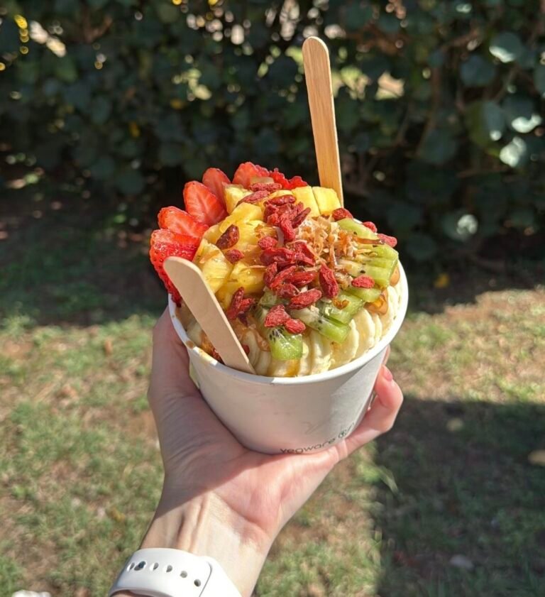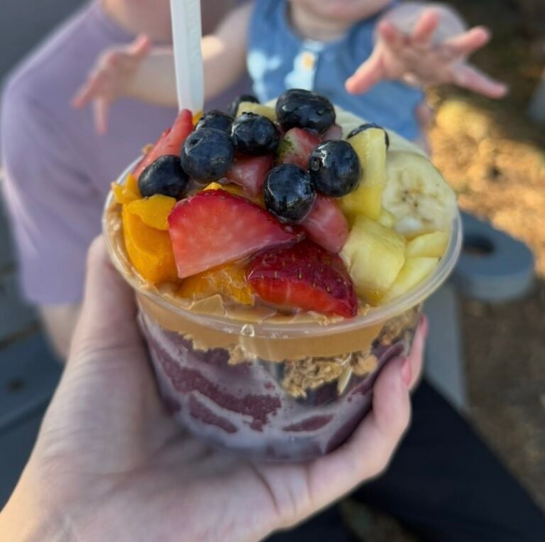 - Baya Bowls: This food truck was a little bit of a drive away, but well worth it. The peanut butter drizzle on this açaí bowl was delectable. I recommend this food truck if you’re willing to drive around the island to get to.