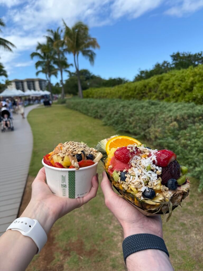 - Maui Fruit Ninja: The most amazing açaí bowls you will ever had. I could not recommend finding this place (as they move to different locations depending on the day—they were within walking distance from our Air BnB for a few days during our trip). While I got a regular açaí bowl, my husband got one in half a pineapple, and it was delicious. Our daughter loved it too!