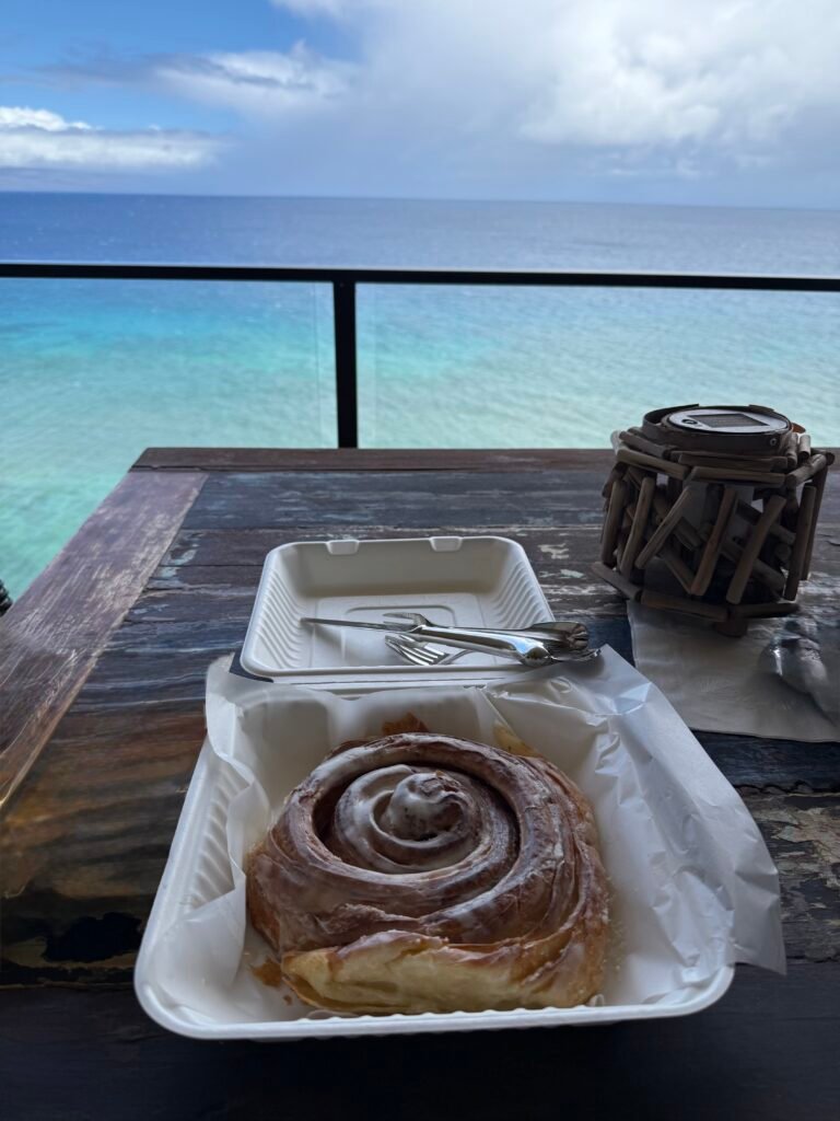 - Papi’s Ohana: This place was worth the hype! The cinnamon rolls from this bakery were beyond amazing. Note, you have to line up before they open or you will be in a long wait line. My husband and I (and our daughter) were going to initially wait in line, but I did not think our daughter would be able to wait that long. But it turns out my father in law was able to swing by on his daily walk (and there was no line, and they still had cinnamon rolls!).