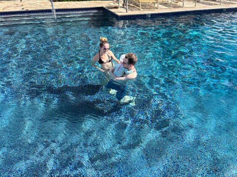 We took our daughter to the pool multiple times during the trip, and she loved the pool! Whoever was holding her, she would glom onto you and just enjoy being held while her body was in the water. Around this time she started really enjoying bath time, so we think she liked the pool so much because of the confined space (vs the ocean).