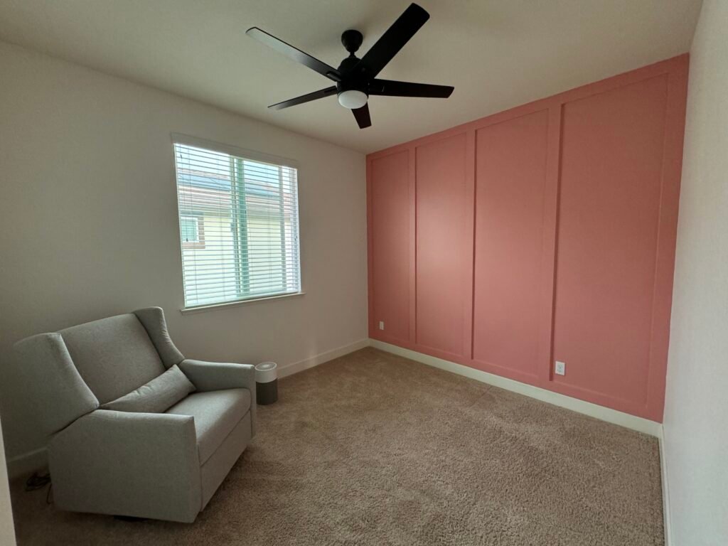 Lastly came the painting. While my husband didn’t let me partake in the painting, as he didn’t want to risk the paint fumes and my growing fetus haha. He applied two coats of the coral pink paint to the wall. And it turned out beautiful!!
