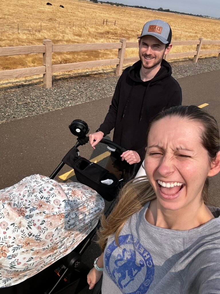 I gave birth to our baby girl during a very hot summer in Northern California (like record temps in July hot). Therefore, walks outside were only feasible in the very early in the morning (5:00am/6:00am early)—but thankfully we were usually up during that time since we were in the newborn phase. But the temperatures outside definitely made walks difficult. Eventually I found my groove (and time of day) where I could get in walks with baby girl.